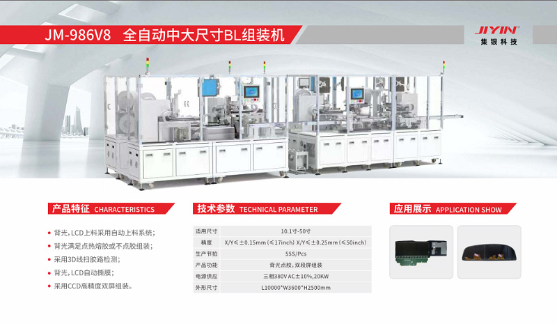 本次展會(huì),集銀科技帶來(lái)了一系列平板顯示智能裝備解決方案亮相,包括:全自動(dòng)小尺寸COF/COG綁定線、全自動(dòng)中大尺寸COG綁定線、全自動(dòng)小尺寸真空貼合線、全自動(dòng)小尺寸OLED曲面貼合線、全自動(dòng)背光組裝線、全自動(dòng)背光源組裝線、非標(biāo)自動(dòng)化生產(chǎn)組裝線。每一個(gè)智能裝備解決方案都配有專屬的展示大屏,從業(yè)者們紛紛駐足觀看,并與現(xiàn)場(chǎng)工作人員密切交流。