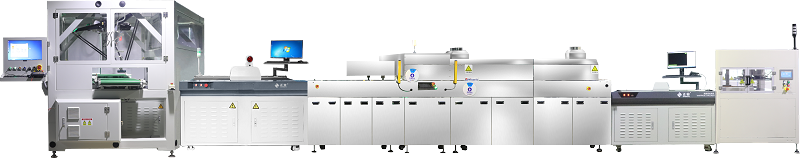 01 上板機+翹曲度檢查機+水平板翹反直機+在線檢孔機+并聯機器人