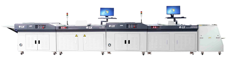 3、(整平)水平板翹反直機:可對PCB成品板進行自動整平,采用上下紅外線加熱,迅速將產品加熱到高溫,以機械滾輪對成品板進行施壓,將彎曲和翹曲(扭曲)施以正向的力達到整平的效果,并用風扇自然冷卻,不會造成二次板彎板翹。